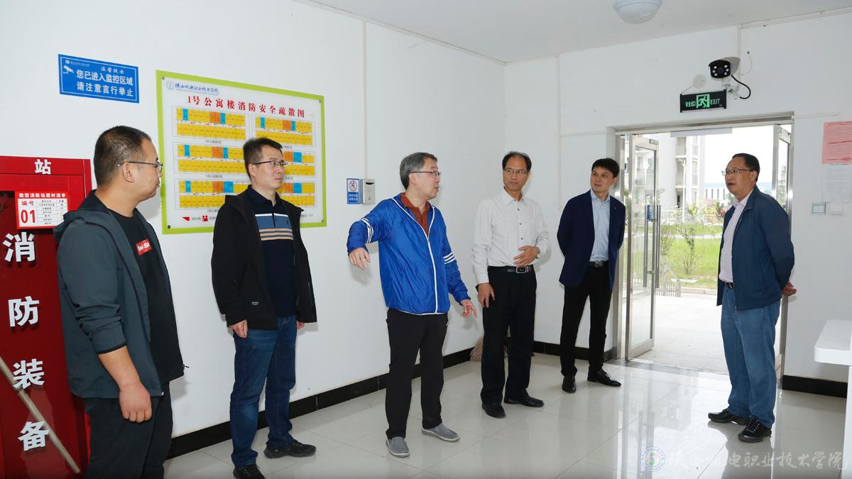 為抓實開學(xué)準(zhǔn)備工作,迎接同學(xué)們返?!盎丶摇保?月26日,校黨委書記伊遜智、院長向紀(jì)明再次帶隊檢查指導(dǎo)了蟠龍校區(qū)開學(xué)前準(zhǔn)備工作,深入學(xué)校生活區(qū)、實訓(xùn)大樓等地檢查指導(dǎo)工作。院長助理趙爭東、學(xué)生處處長王建斌、后勤保障處副處長盧彥峰及相關(guān)項目負(fù)責(zé)人同行。