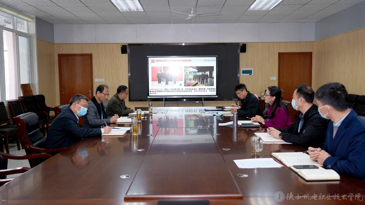 10月31日下午,陜西機(jī)電職業(yè)技術(shù)學(xué)院在蟠龍校區(qū)組織召開2022年第7次黨委理論學(xué)習(xí)中心組集體學(xué)習(xí)會(huì),傳達(dá)學(xué)習(xí)黨的二十大精神,習(xí)近平總書記帶領(lǐng)新一屆中央政治局常委瞻仰延安革命紀(jì)念地時(shí)的重要講話精神。黨委書記伊遜智主持會(huì)議。