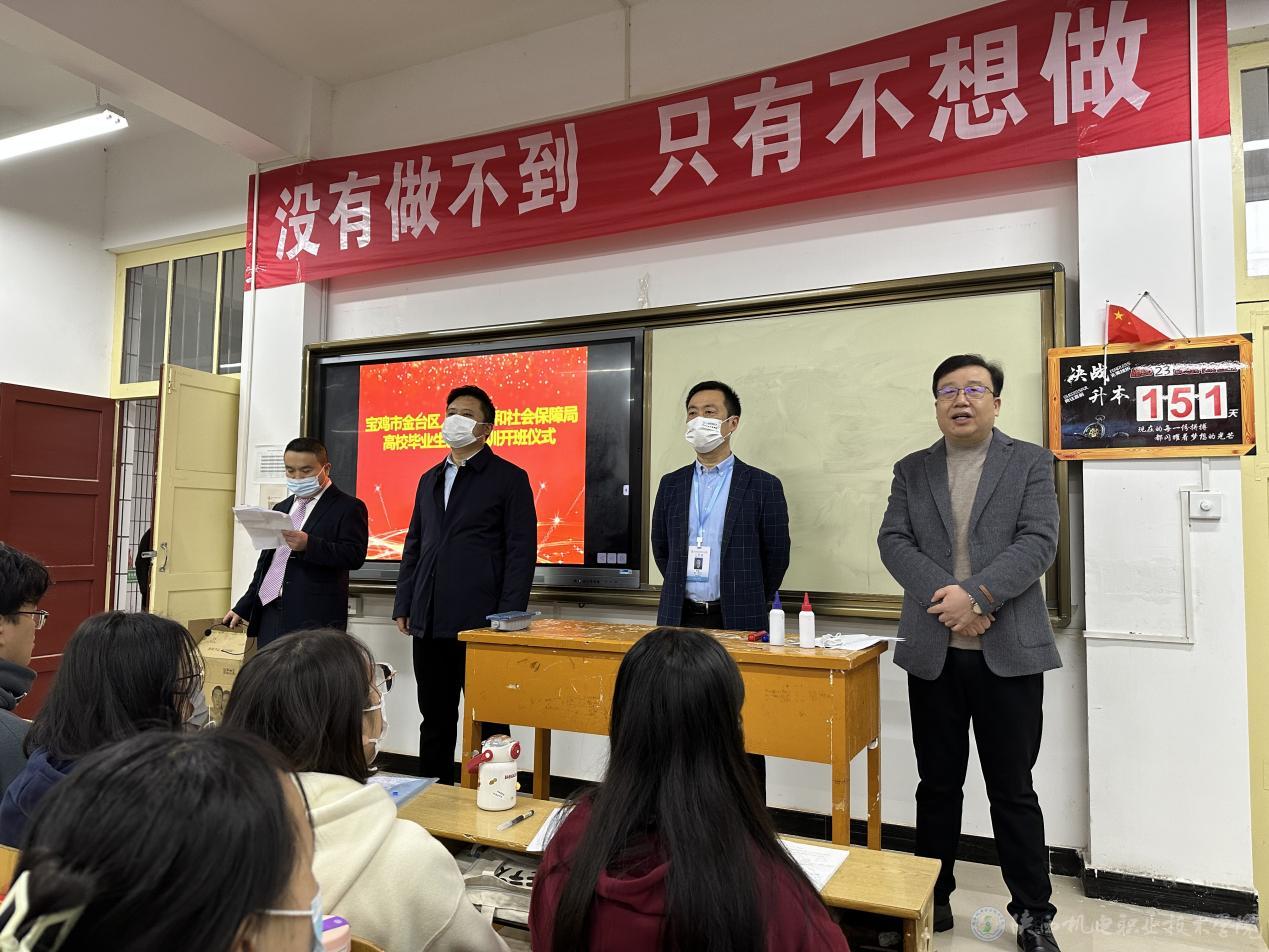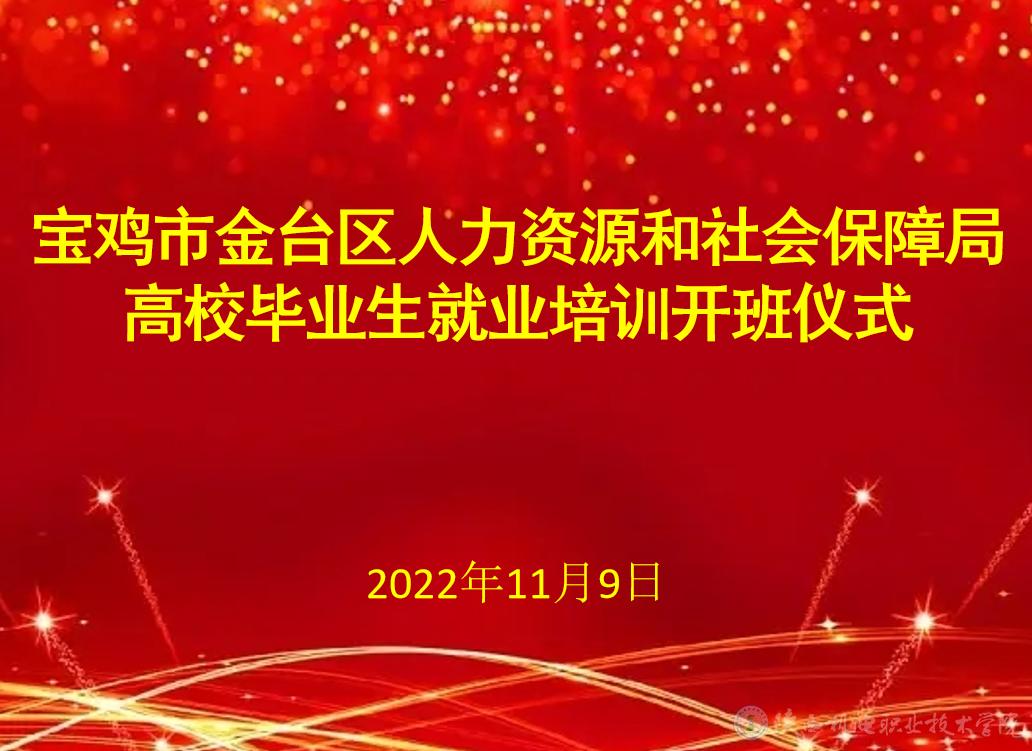 2022年11月9日,寶雞市金臺(tái)區(qū)人力資源和社會(huì)保障局高校畢業(yè)生就業(yè)培訓(xùn)開班儀式在我校寶福路校區(qū)隆重召開。