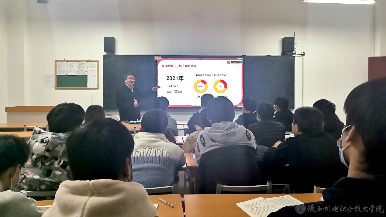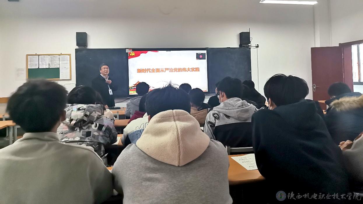 11月24日下午,學(xué)院黨委副書記、紀(jì)委書記齊曉軍在博學(xué)樓315教室為22機(jī)電技術(shù)2班40余名學(xué)生上形勢(shì)與政策課,講授《新時(shí)代全面從嚴(yán)治黨的偉大實(shí)踐》和《偉大時(shí)代的歷史跨越》兩個(gè)專題內(nèi)容。