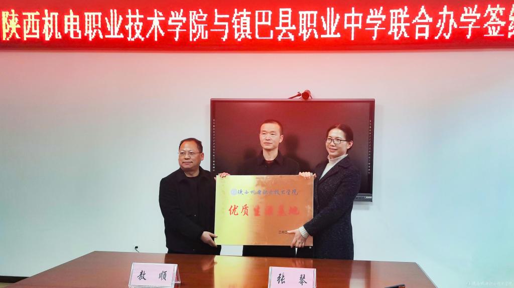 會議最后,院校雙方簽訂了聯(lián)合辦學(xué)協(xié)議。張琴副書記為鎮(zhèn)巴縣職業(yè)中學(xué)授予了“優(yōu)質(zhì)生源基地”牌匾。