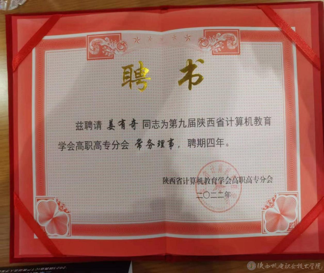 論壇期間,為陜西省計(jì)算機(jī)教育學(xué)會(huì)高職高專分會(huì)理事頒發(fā)了聘書,張克被聘為副理事長,姜有奇被聘為常務(wù)理事。