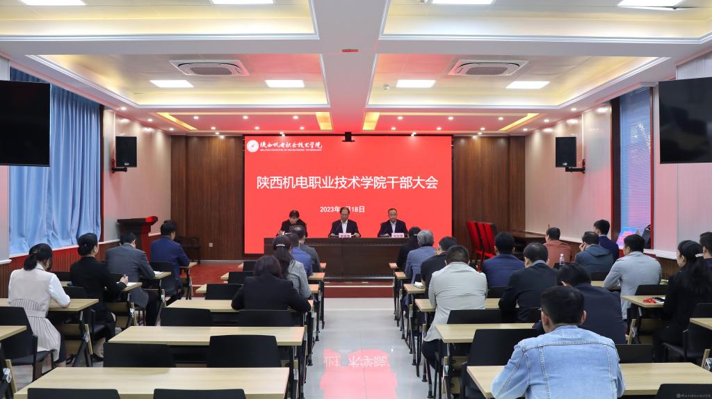2023年4月18日上午,陜西機(jī)電職業(yè)技術(shù)學(xué)院在蟠龍校區(qū)博學(xué)樓111室召開(kāi)干部大會(huì)。學(xué)校黨政領(lǐng)導(dǎo)班子成員、中層干部參加會(huì)議。