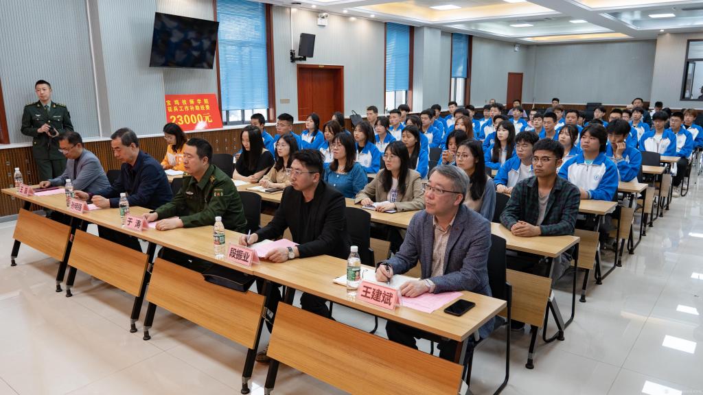 儀式上,張琴代表學校致歡迎辭,并介紹了我校近年來征兵工作開展情況和“優(yōu)質兵員儲備基地”后期建設工作設想;魏海峰宣讀了省征兵辦、省教育廳、省人社廳關于批準設立“優(yōu)質兵員儲備基地”的批復;楊紅升與伊遜智為學?!皟?yōu)質兵員儲備基地”揭牌;四所院校領取了2022年高校征兵工作補助經(jīng)費。