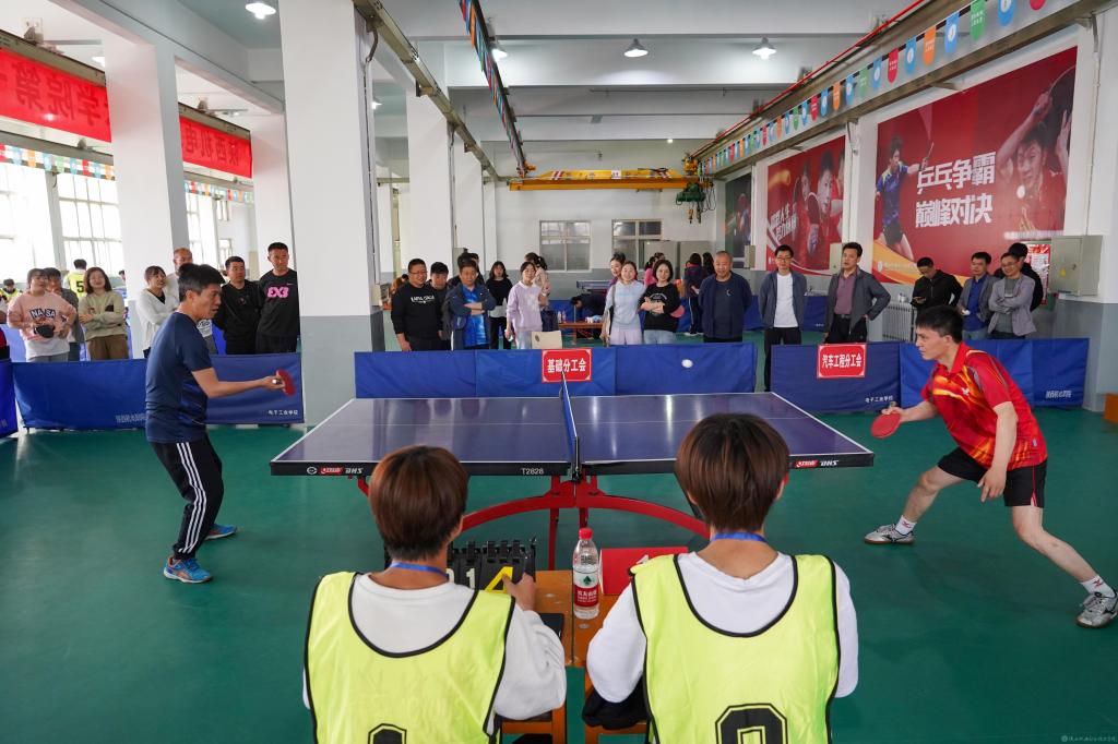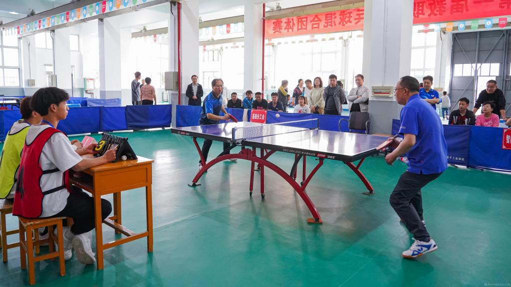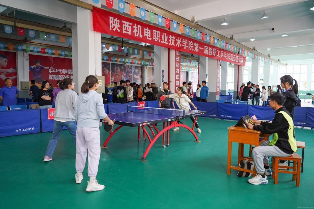 4月15日,由陜西機(jī)電職業(yè)技術(shù)學(xué)院工會(huì)主辦、體育部協(xié)辦的第一屆教職工乒乓球混合團(tuán)體賽(決賽)在寶福路校區(qū)乒乓球館舉行,人事、基礎(chǔ)、后勤基建、招生就業(yè)、宣傳紀(jì)檢、交通運(yùn)輸、行政、智能制造以及學(xué)工分工會(huì)等9支代表隊(duì)參加第二階段賽事。