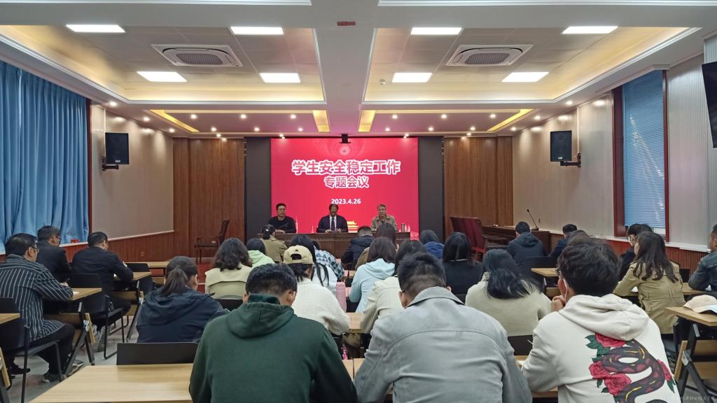 我校學(xué)生安全穩(wěn)定工作專題會(huì)議于4月26日上午在蟠龍校區(qū)博學(xué)樓會(huì)議室召開,黨委書記伊遜智出席,保衛(wèi)處副處長(zhǎng)常小凱、學(xué)工系統(tǒng)科級(jí)以上干部、全體專職輔導(dǎo)員、新疆派駐教師參加,會(huì)議由學(xué)生處處長(zhǎng)王建斌主持。
