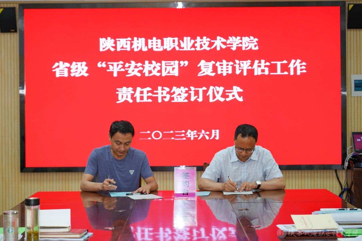 院長(zhǎng)向紀(jì)明同志對(duì)復(fù)審評(píng)估工作各階段工作職責(zé)及任務(wù)進(jìn)行了安排部署,同時(shí)代表學(xué)校與相關(guān)部門(mén)簽訂省級(jí)“平安校園”復(fù)審評(píng)估工作目標(biāo)責(zé)任書(shū)。