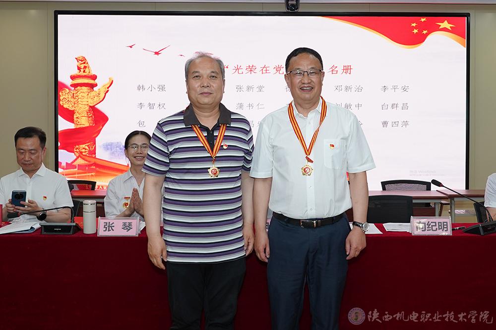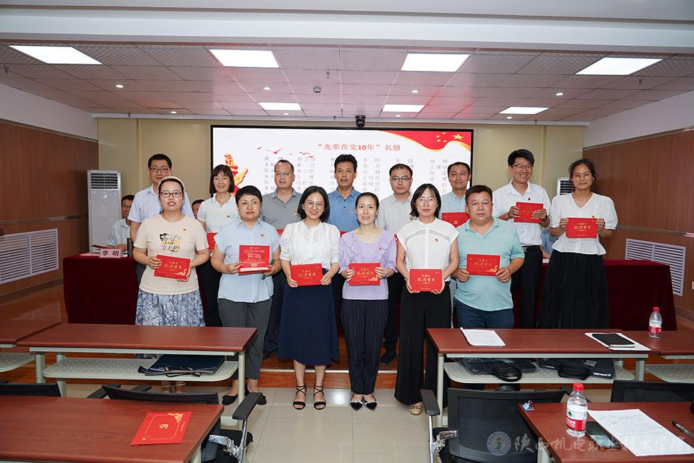 校領(lǐng)導(dǎo)為光榮在黨滿(mǎn)10年的黨員同志發(fā)放政治生日卡,為光榮在黨滿(mǎn)20年、30年的黨員同志發(fā)放黨齡紀(jì)念章。