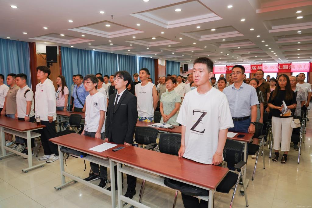 上午10時整,畢業(yè)典禮在莊嚴的國歌聲中拉開帷幕。