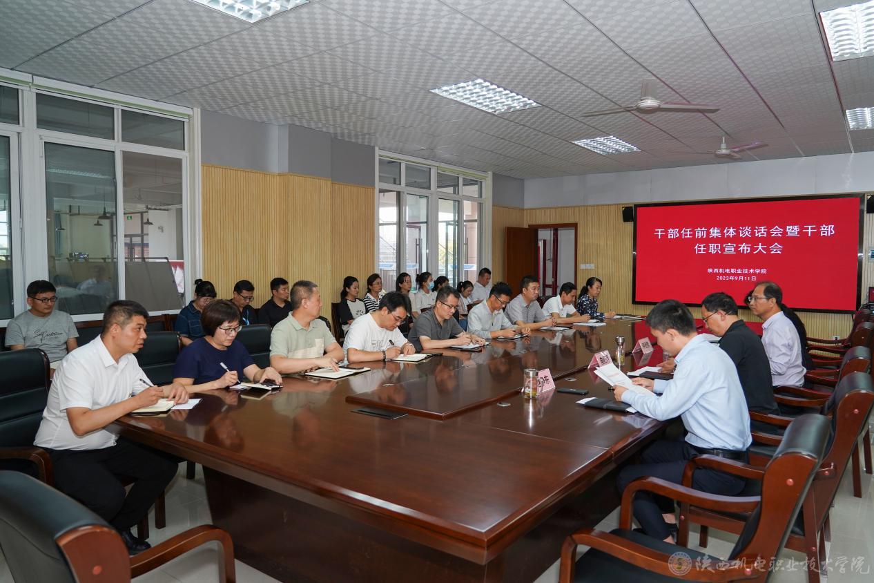 2023年9月11日下午,學(xué)校黨委在蟠龍校區(qū)圖書館二樓會議室召開新任職干部任前集體談話會暨干部任職宣布大會。黨委書記伊遜智出席會議并講話,黨委副書記、紀(jì)委書記陳紅梅,黨委委員、院長助理、組織部部長趙爭東,新任職干部,鐵道工程學(xué)院、電子與信息學(xué)院、交通運(yùn)輸學(xué)院、黨政辦公室、基礎(chǔ)部、后勤保障處、校團(tuán)委等部門科級以上干部、教研室主任參加會議,會議由黨委副書記、院長向紀(jì)明主持。