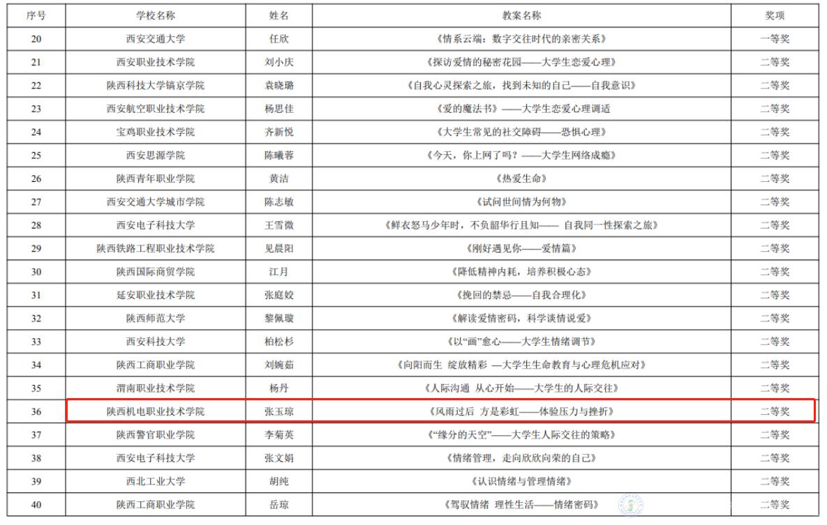 榮獲第五屆陜西高校心理健康教育優(yōu)秀教案二等獎