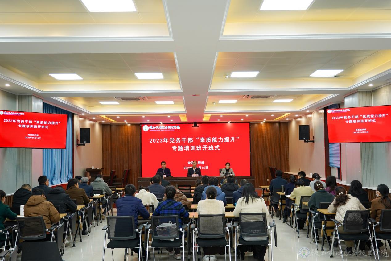 2023年11月15日,陜西機電職業(yè)技術(shù)學(xué)院在蟠龍校區(qū)博學(xué)樓111室舉辦2023年黨務(wù)干部“素質(zhì)能力提升”專題培訓(xùn)班。黨委書記伊遜智,黨委副書記、紀委書記陳紅梅,黨委委員、院長助理、黨委組織部(統(tǒng)戰(zhàn)部)部長趙爭東參加開班式,全校各黨支部書記、支部委員、黨委組織部全體人員參加,開班式由趙爭東主持。