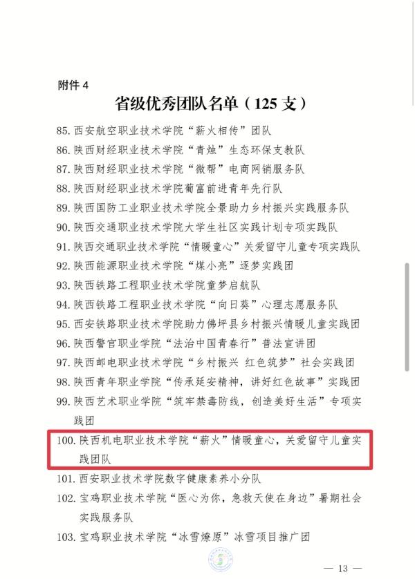 近日,中共陜西省委宣傳部、中共陜西省委文明辦、中共陜西省委教育工委、共青團陜西省委、陜西省學生聯(lián)合會對2023年全省大中專學生志愿者暑期文化科技衛(wèi)生“三下鄉(xiāng)”社會實踐活動先進集體和個人進行了通報表彰。我?!靶交稹鼻榕?,關(guān)愛留守兒童實踐團隊獲評“省級優(yōu)秀團隊”,李妙桐同學榮獲“省級先進個人”。