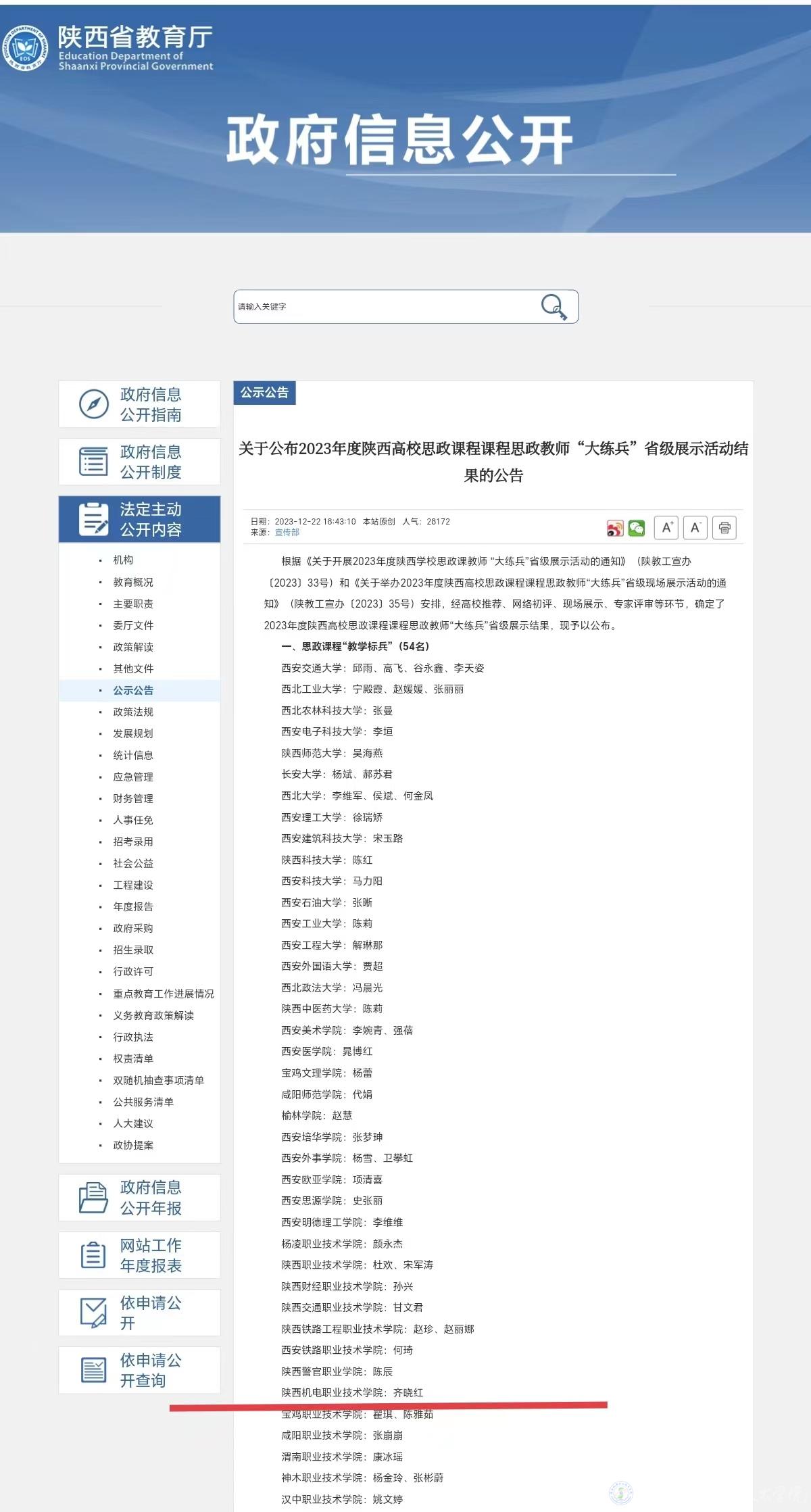 12月21日,由陜西省委教育工委、陜西省教育廳主辦的2023年度陜西高校思政課程課程思政教師“大練兵”省級(jí)展示活動(dòng)在西北工業(yè)大學(xué)友誼校區(qū)舉行。來(lái)自全省79所高校的240名選手,經(jīng)過(guò)校級(jí)“大練兵”、省級(jí)網(wǎng)絡(luò)初評(píng),晉級(jí)省級(jí)現(xiàn)場(chǎng)展示。通過(guò)現(xiàn)場(chǎng)授課、答辯,集中展示參賽教師的政治素質(zhì)、業(yè)務(wù)能力和育人水平。