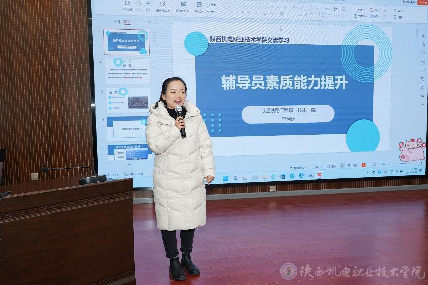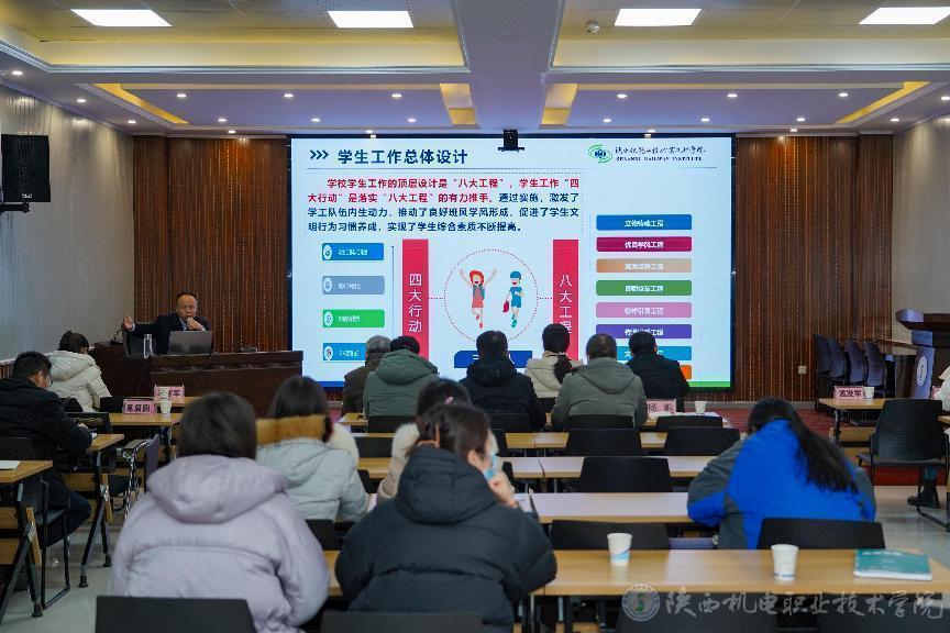 陜西鐵路工程職業(yè)技術學院學生處副處長黃阿崗作了題為《立德樹人擔使命“三全育人”譜新篇---陜鐵院學生工作交流匯報》的報告,從學生工作制度、八大工程、四大行動、學工隊伍建設、學生日常管理、學生公寓管理、信息化建設等方面詳細介紹了陜鐵院的經(jīng)驗和做法,讓大家感到獲益頗豐。