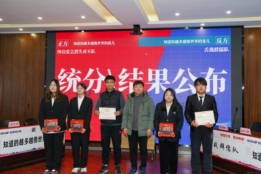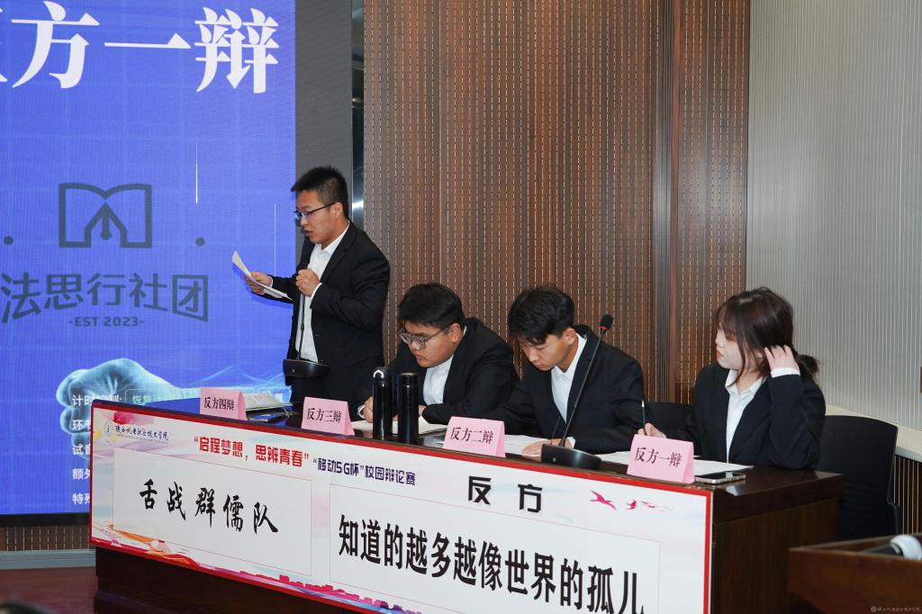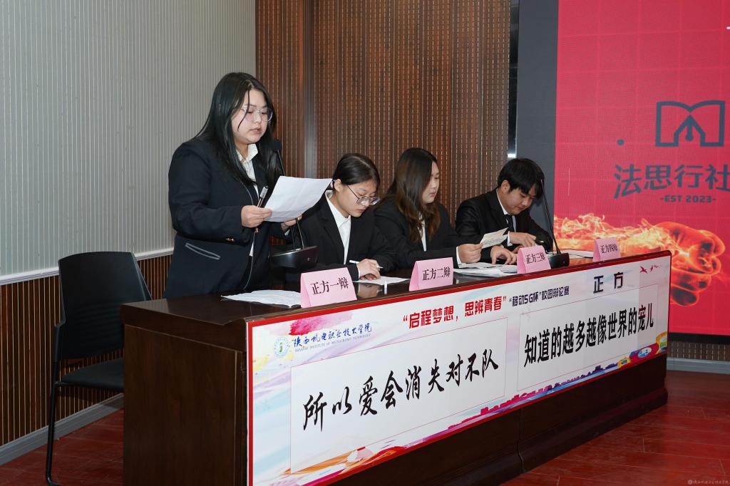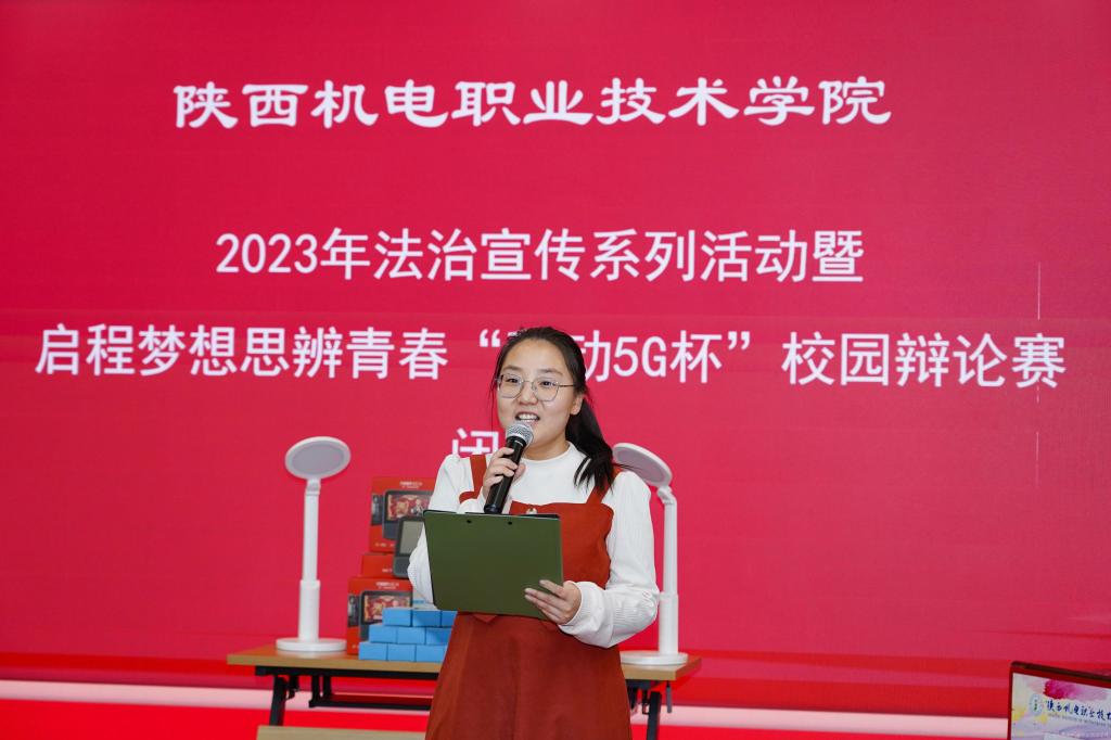 2023年12月28日,陜西機(jī)電職業(yè)技術(shù)學(xué)院2023年法治宣傳系列活動暨啟程夢想·思辨青春“移動5G杯”校園辯論賽進(jìn)行了冠軍爭奪賽,并舉行了頒獎儀式。校團(tuán)委書記王樞,基礎(chǔ)部副部長李明,馬克思主義學(xué)院負(fù)責(zé)人王康,交通運(yùn)輸學(xué)院團(tuán)總支書記、學(xué)生管理工作辦公室主任侯京賀,電子信息學(xué)院團(tuán)總支書記、學(xué)生管理工作辦公室主任汪思池,各二級學(xué)院辯論賽參賽選手及指導(dǎo)教師參加了本次活動?;顒佑神R克思主義學(xué)院教師王樂琴主持。