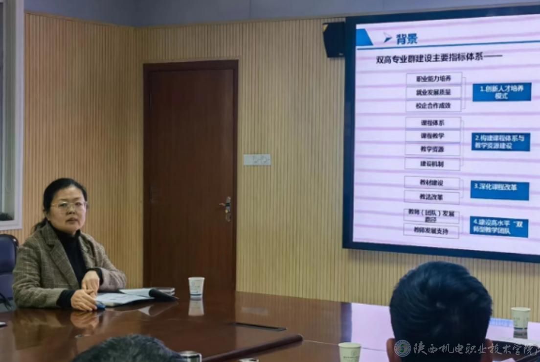 教務(wù)處處長白娟娟從建設(shè)基礎(chǔ)、建設(shè)思路與目標(biāo)、建設(shè)任務(wù)、經(jīng)費(fèi)預(yù)算、預(yù)期成效、保障措施等六個(gè)方面對(duì)我?!半p高計(jì)劃”建設(shè)思路及建設(shè)任務(wù)安排進(jìn)行匯報(bào),對(duì)存在的問題進(jìn)行梳理分析,并提出了相應(yīng)的解決措施。智能制造學(xué)院副院長高白川介紹了“雙高”專業(yè)群建設(shè)2024年年度任務(wù),主要預(yù)期成果及目標(biāo)值及后續(xù)工作思路。各組績效指標(biāo)完成進(jìn)度、標(biāo)志性成果取得情況、存在的問題以及下一步工作安排。