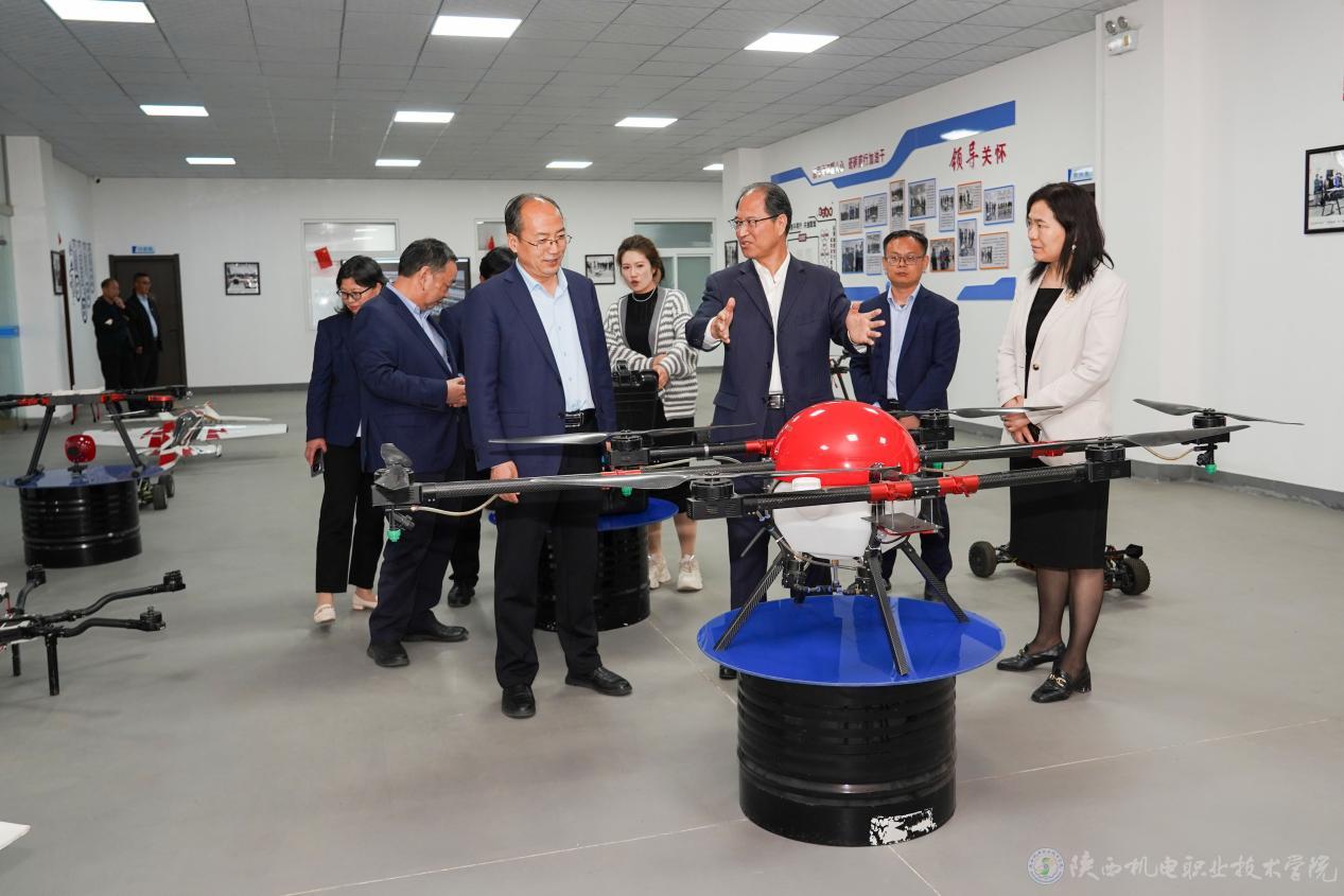 會后,黎煒一行參觀了我校搟面皮產(chǎn)業(yè)學(xué)院、無人機(jī)產(chǎn)業(yè)學(xué)院、智能制造學(xué)院實(shí)訓(xùn)室等地。