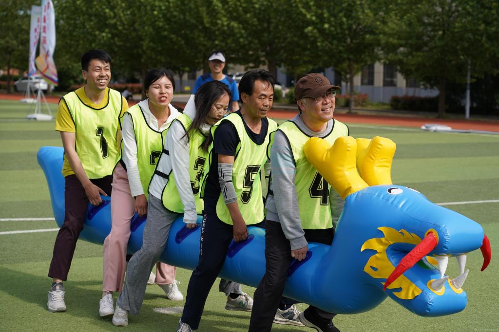 本次趣味運動會在校工會的精心策劃和體育部、各分工會的密切配合下,共組成七支教工隊參與比賽。設(shè)有“飛盤九宮格”“1分鐘原地跳繩”“袋鼠跳”“4*100米混合接力”“30米籃球運球繞桿接力”“旱地龍舟”六個項目,集趣味性、娛樂性、協(xié)作性和競爭性為一體,既是力量的角逐,又是智慧的較量;既考驗個人體育競技水平,又考驗隊員之間的默契與配合。