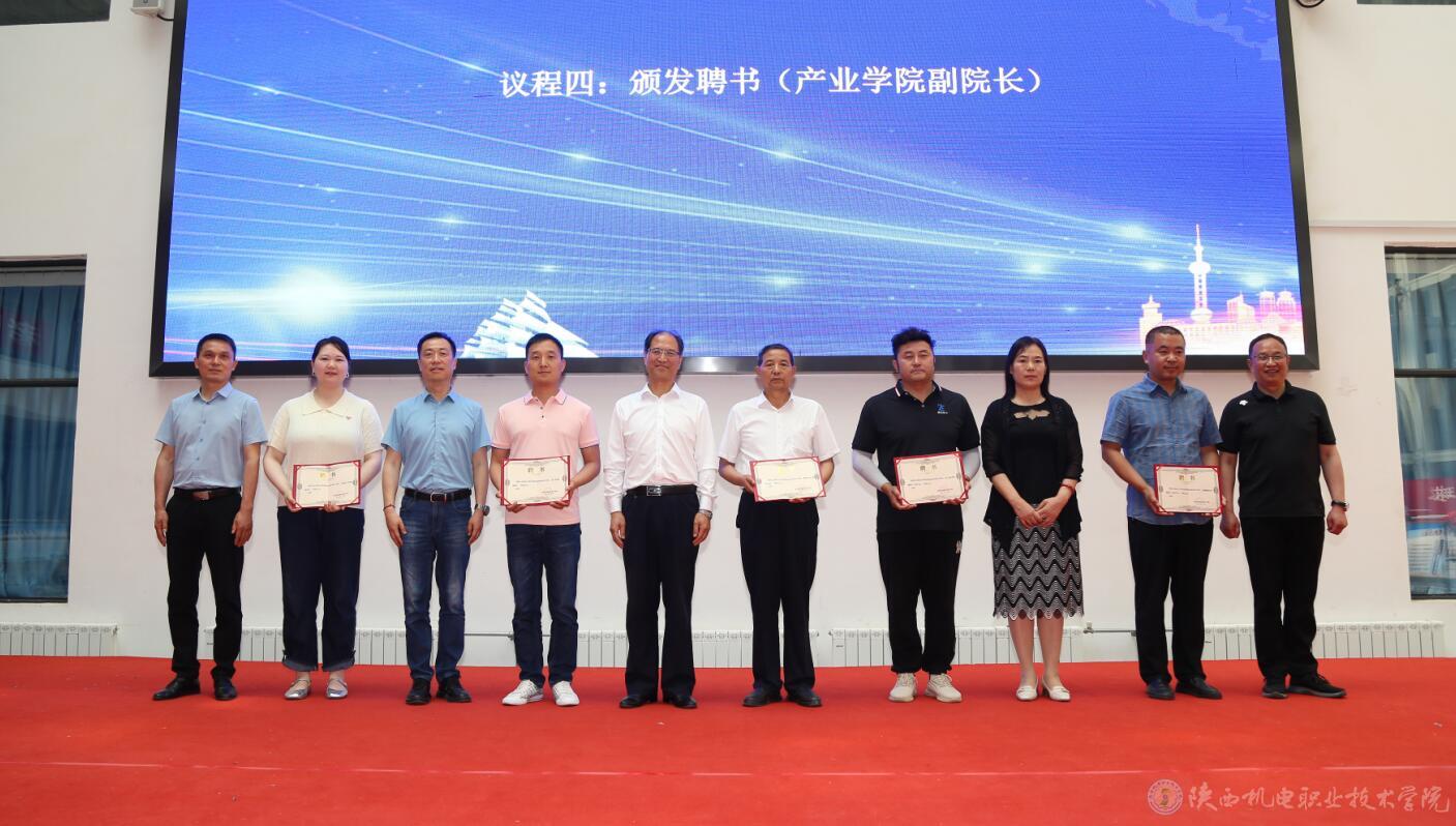 活動(dòng)現(xiàn)場,校領(lǐng)導(dǎo)為寶雞搟面皮產(chǎn)業(yè)促進(jìn)協(xié)會(huì)會(huì)長張新懷頒發(fā)了搟面皮產(chǎn)業(yè)學(xué)院副院長聘書;為寶雞搟面皮產(chǎn)業(yè)促進(jìn)協(xié)會(huì)秘書長高穎頒發(fā)了搟面皮產(chǎn)業(yè)學(xué)院秘書長聘書;為西安風(fēng)標(biāo)電子科技有限公司副總經(jīng)理張志云頒發(fā)了風(fēng)標(biāo)制造產(chǎn)業(yè)學(xué)院副院長聘書;為陜西壹控智飛智能科技有限公司總經(jīng)理李海濤頒發(fā)了無人機(jī)產(chǎn)業(yè)學(xué)院副院長聘書;為寶雞墨菲新金屬科技有限公司總經(jīng)理李青龍頒發(fā)了鈦產(chǎn)業(yè)學(xué)院副院長聘書。