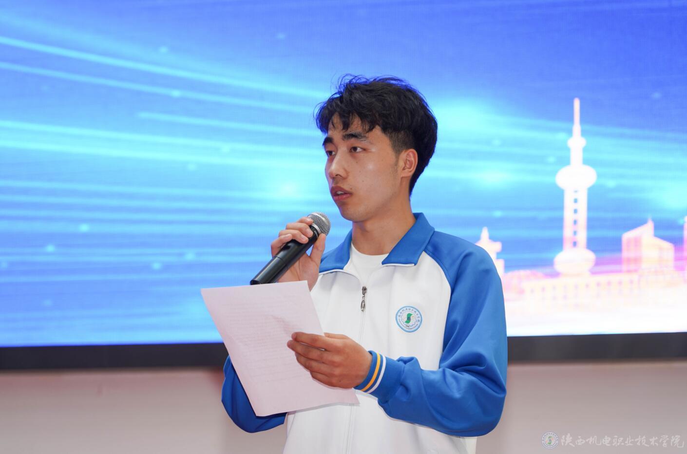 電子信息學(xué)院學(xué)生代表車遨樂發(fā)言,他表示作為新時(shí)代的新青年,將努力鉆研技術(shù)技能,不斷增強(qiáng)創(chuàng)新能力,全面提高自身的職業(yè)素質(zhì)和技能水平,爭做一名高素質(zhì)技術(shù)技能人才!