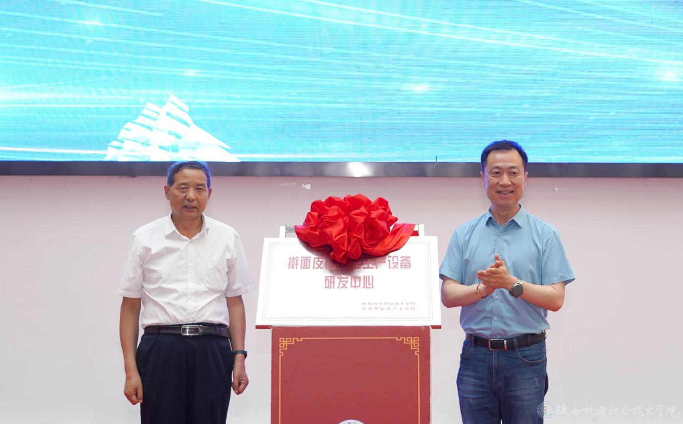 啟動(dòng)儀式結(jié)束后,黨委委員、副院長張克和寶雞搟面皮產(chǎn)業(yè)促進(jìn)協(xié)會(huì)會(huì)長張新懷共同為搟面皮自動(dòng)化生產(chǎn)設(shè)備研發(fā)中心揭牌。大家合影留念后,共同前往博學(xué)樓大廳、博學(xué)樓前廣場、行知樓、強(qiáng)技樓等地參觀了各教學(xué)單位職業(yè)教育成果展示。