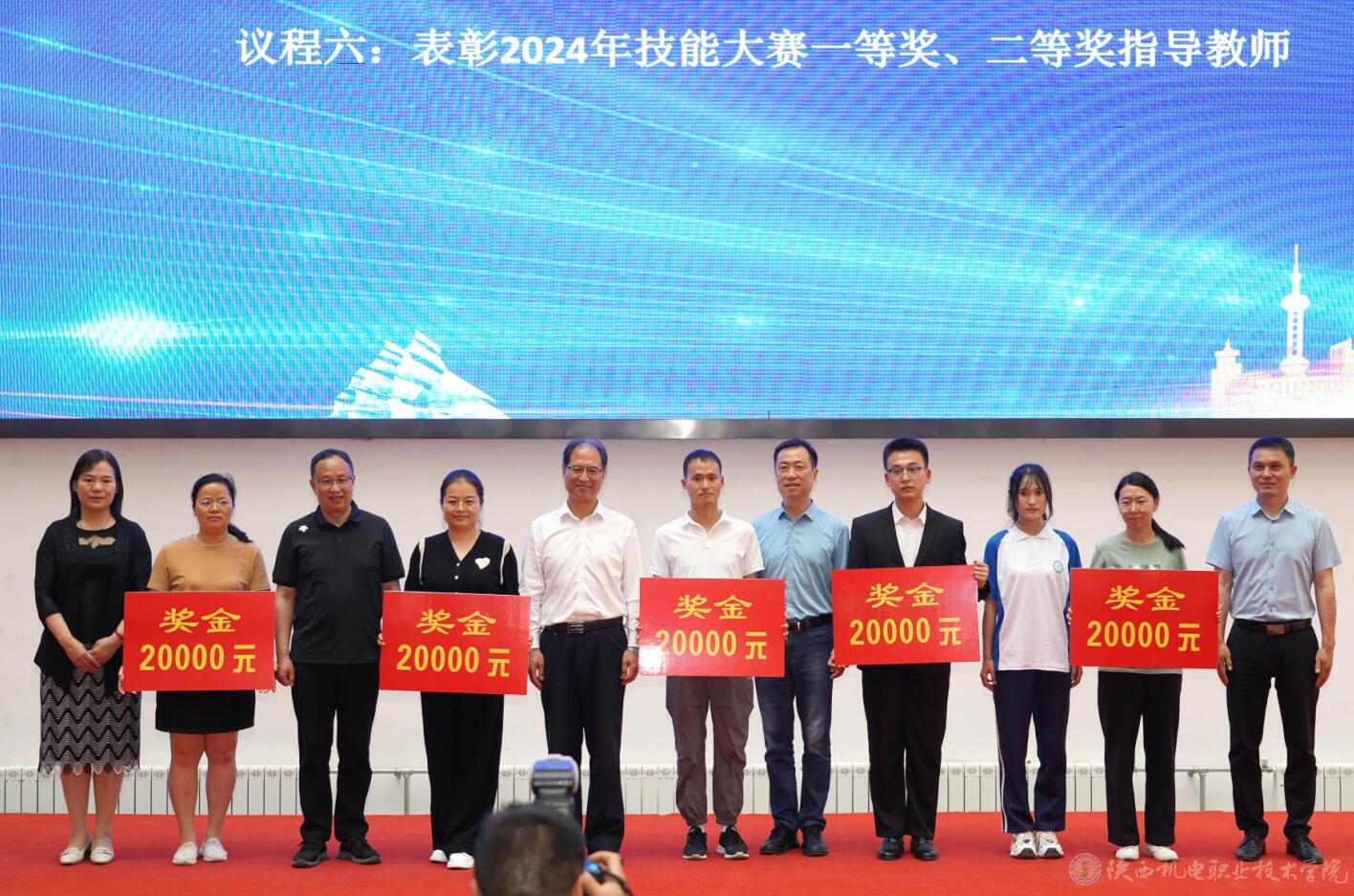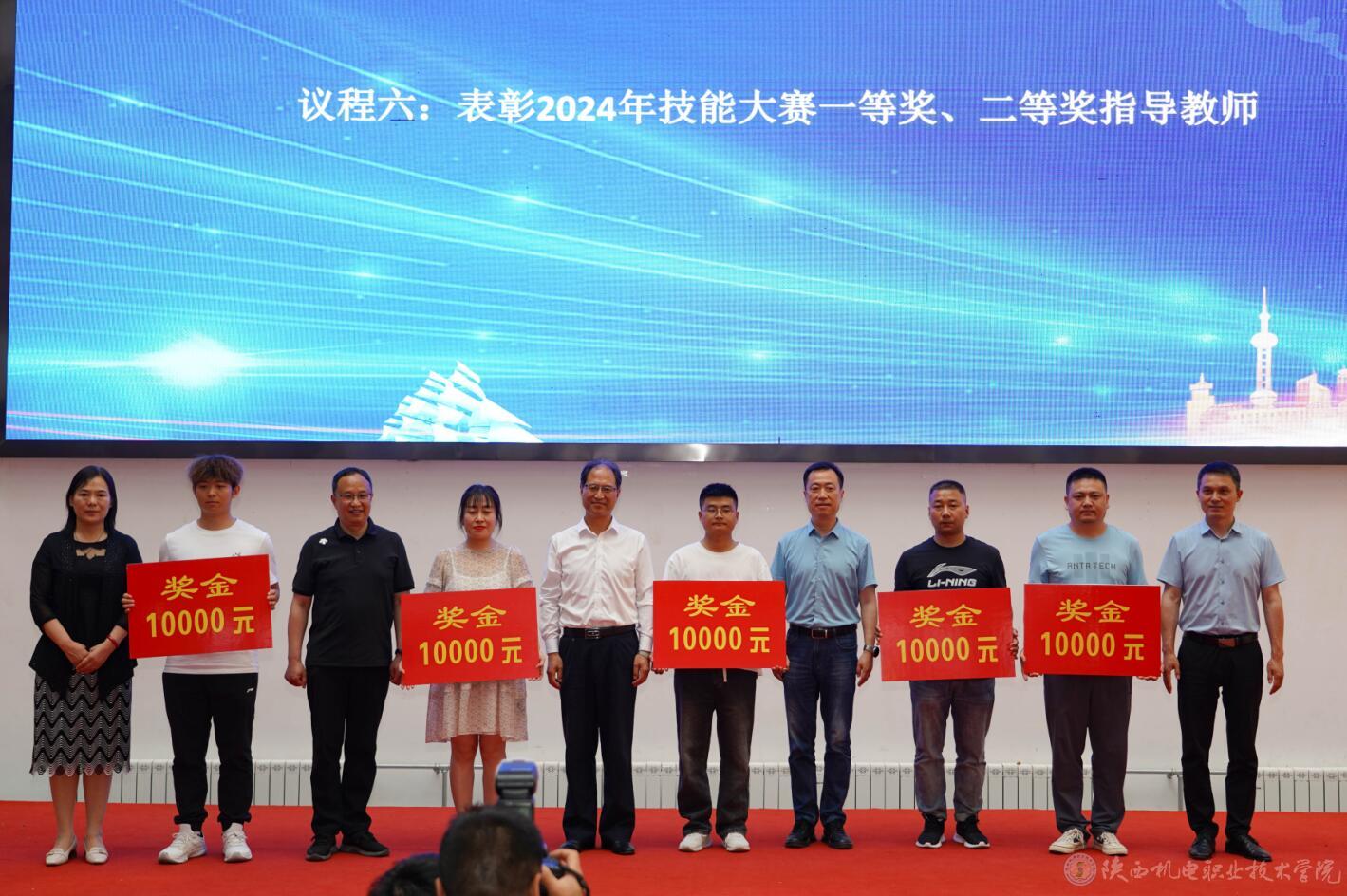 與會(huì)人員集中觀看了我校第七屆全國高校大學(xué)生講思政課公開課展示活動(dòng)高職組一等獎(jiǎng)作品《傳承紅色基因 筑起鐵路脊梁》,汲取了中國鐵路追趕超越的非凡戰(zhàn)績和中國鐵建人匠心獨(dú)運(yùn)、以身報(bào)國的精神風(fēng)貌,堅(jiān)定了聽黨話、跟黨走的目標(biāo)和信心。并對我校2024年陜西省職業(yè)院校技能大賽一等獎(jiǎng)、二等獎(jiǎng)獲獎(jiǎng)教師進(jìn)行了表彰。