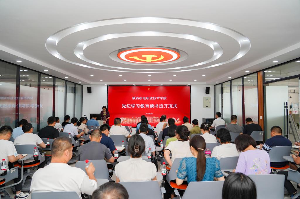 黨委委員、宣傳部部長李明宣讀《中共陜西機電職業(yè)技術學院委員會關于舉辦黨紀學習教育讀書班的通知》(陜機電職院黨發(fā)〔2024〕162號)及學校黨委黨紀學習教育讀書班學習安排。