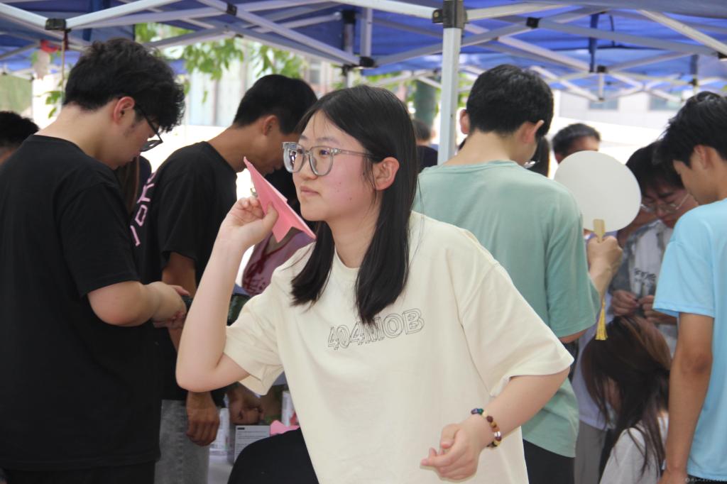 活動設(shè)計契合“以德育心、以智慧心、以體強(qiáng)心、以美潤心、以體健心”理念,設(shè)朋輩互助區(qū)、科學(xué)宣泄區(qū)、潛能開發(fā)區(qū)、舒心驛站區(qū)、學(xué)院展示區(qū)五個功能區(qū),開展了扭扭樂園、羊毛氈戳戳樂、香囊DIY、彩繪扇子、創(chuàng)意旗幟、答案書、小狗集市、搶球大作戰(zhàn)、投壺、OH卡牌、心理健康知識問答等30余項學(xué)生參與度高、趣味性與知識性并存的活動。同學(xué)們專注地投入各類活動過程,將內(nèi)心的情感、想法、沖突外化出來,通過分享交流,表達(dá)創(chuàng)作構(gòu)思,投射出內(nèi)心豐富的世界。