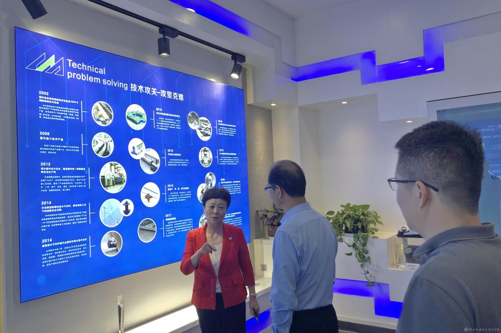 隨后,李慧玲陪同伊遜智一行參觀了長美科技展廳,觀看了長美科技公司宣傳片,介紹了企業(yè)技術(shù)攻關(guān)、攻堅克難的歷程,伊遜智一行認真聆聽了李慧玲對產(chǎn)品的詳細介紹與產(chǎn)品內(nèi)涵的科技含量,沉浸式體驗了公司減振降噪的顯著效果。