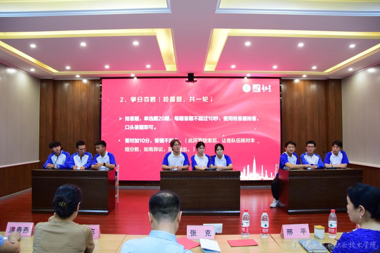 大賽由基礎(chǔ)部黨支部書記、副部長(zhǎng)李明主持,黨委副書記、院長(zhǎng)向紀(jì)明,黨委委員、副院長(zhǎng)張克,高級(jí)國(guó)學(xué)禮儀師、國(guó)際注冊(cè)高級(jí)禮儀師、馬克思主義學(xué)院教學(xué)督導(dǎo)邢平,教務(wù)處處長(zhǎng)白娟娟、副處長(zhǎng)滿春燕,校團(tuán)委書記王樞,超星集團(tuán)西安分公司人事總監(jiān)馬云志、市場(chǎng)經(jīng)理田擎遠(yuǎn),以及各二級(jí)學(xué)院黨支部書記、院長(zhǎng)等嘉賓蒞臨現(xiàn)場(chǎng)觀看比賽。