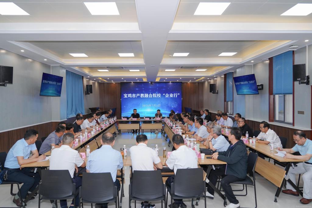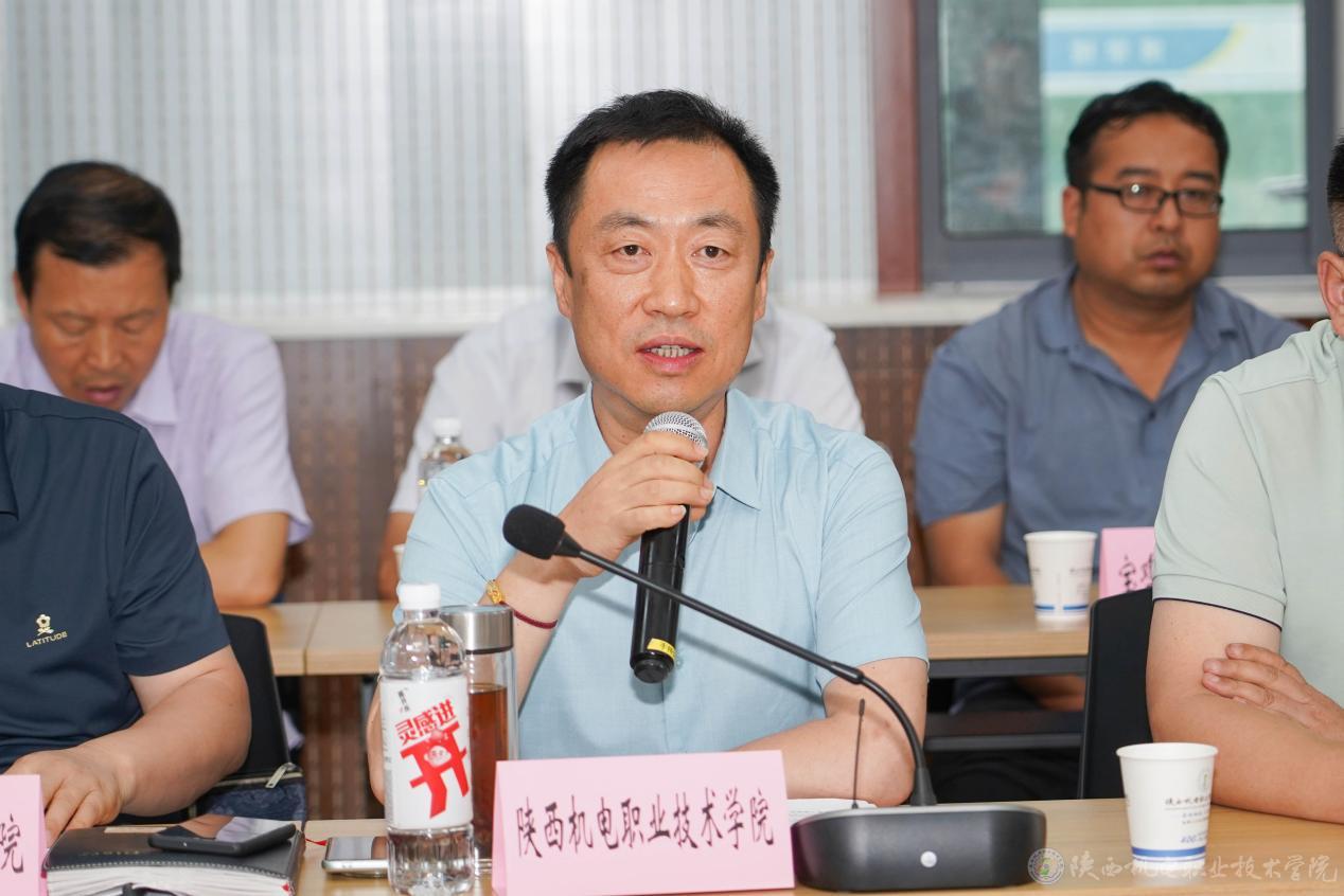 走訪調(diào)研結(jié)束后,與會人員在陜西機電職業(yè)技術(shù)學(xué)院博學(xué)樓視頻會議室召開座談會。會議由市政府副秘書長苗崑主持。