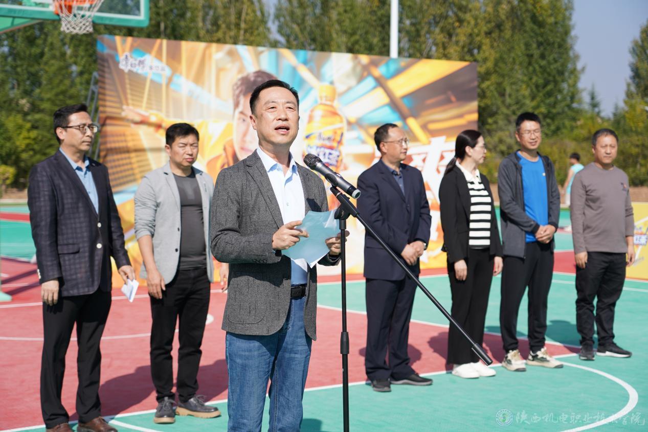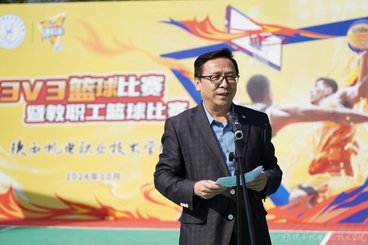 為進(jìn)一步豐富校園文化生活,增強(qiáng)學(xué)生體質(zhì),培養(yǎng)團(tuán)隊(duì)合作精神,10月15日下午,陜西機(jī)電職業(yè)技術(shù)學(xué)院在蟠龍校區(qū)成功舉辦了一場別開生面的3v3籃球賽,本次比賽共57支隊(duì)伍報(bào)名,228名隊(duì)員參加。此次賽事不僅為學(xué)生們搭建了一個(gè)充分展示自我風(fēng)采、勇于挑戰(zhàn)自我的舞臺,更極大地激發(fā)了大家對籃球運(yùn)動(dòng)的濃厚興趣與對體育精神的崇高追求,讓青春的活力與激情在籃球場上盡情綻放。黨委副書記、院長向紀(jì)明,黨委副書記張琴,黨委委員、副院長張克,黨委委員、宣傳部部長李明以及校團(tuán)委、交通運(yùn)輸學(xué)院領(lǐng)導(dǎo)出席開幕式?;顒?dòng)由基礎(chǔ)部(體育部)黨支部書記、副部長李明主持。