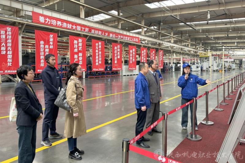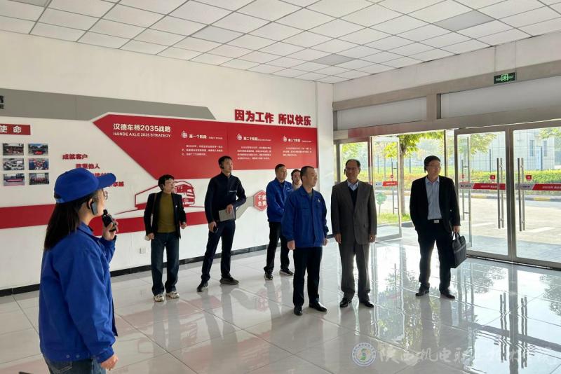 陜西機(jī)電職業(yè)技術(shù)學(xué)院校黨委書記伊遜智、智能制造學(xué)院院長馬海彥、智能制造學(xué)院黨支部書記薛媛麗等作為校方代表,漢德車橋副總經(jīng)理張文強(qiáng)、工會副主席趙曉輝、橋六廠廠長安軍保等作為公司代表,共同參加本次活動。一行人員參觀了生產(chǎn)車間,了解企業(yè)發(fā)展、崗位設(shè)置、生產(chǎn)實(shí)際等。