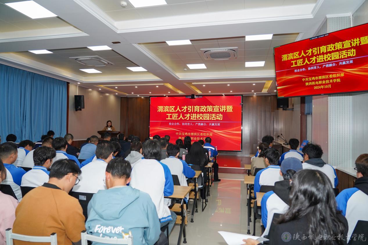 為加大人才政策宣傳力度,推進人才服務走深走實,營造尊重人才、愛惜人才的良好氛圍,10月28日,陜西機電職業(yè)技術學院聯(lián)合渭濱區(qū)委組織部開展人才引育政策宣講暨工匠人才進校園活動。中共渭濱區(qū)委常委、組織部長李鵬和學校黨委副書記、院長向紀明等出席會議,會議由校企合作處處長白娟娟主持。