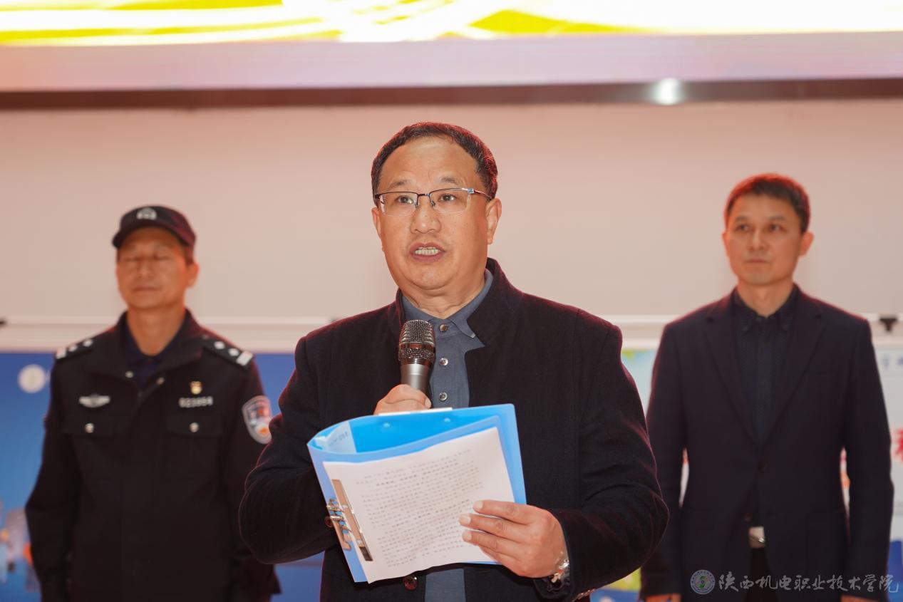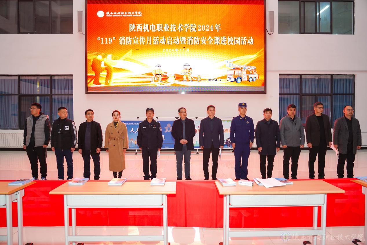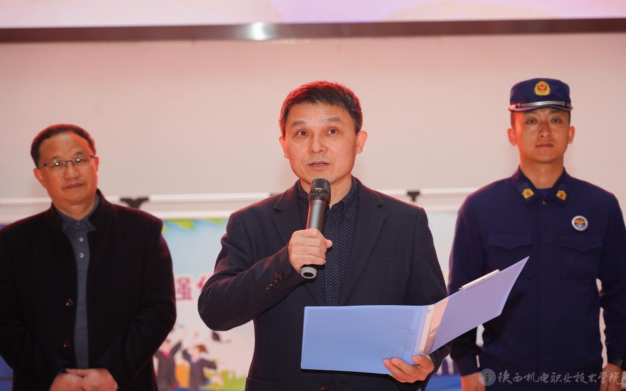 龐建軍宣布陜西機(jī)電職業(yè)技術(shù)學(xué)院2024年“119”消防宣傳月暨消防安全課進(jìn)校園活動(dòng)啟動(dòng)。