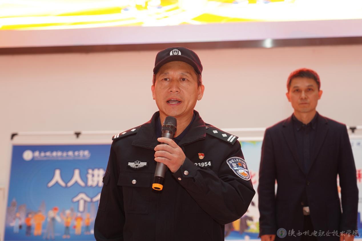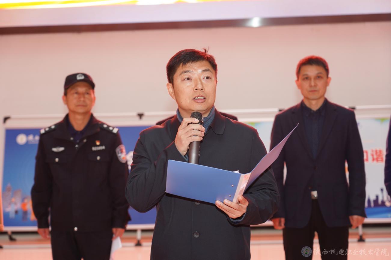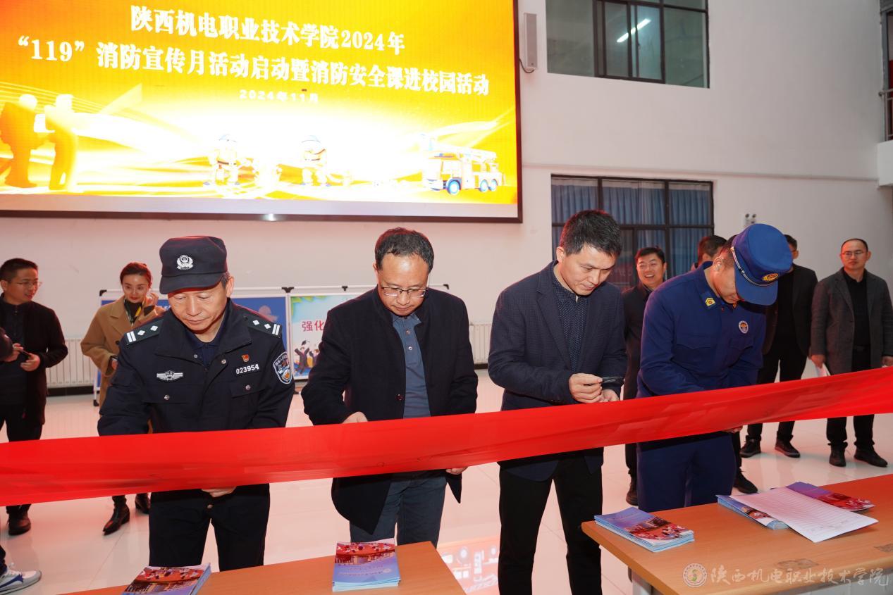 龐建軍宣布陜西機(jī)電職業(yè)技術(shù)學(xué)院2024年“119”消防宣傳月暨消防安全課進(jìn)校園活動(dòng)啟動(dòng)。