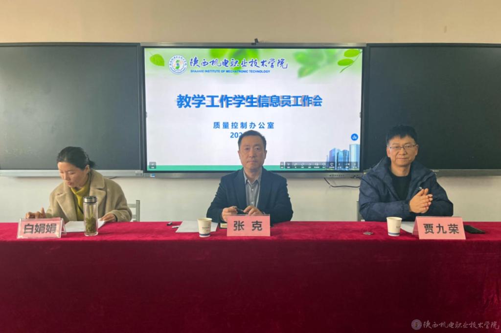 為進一步提升學(xué)校教育教學(xué)質(zhì)量,加強內(nèi)部質(zhì)量保證體系建設(shè),引導(dǎo)和培養(yǎng)學(xué)生信息員的工作能力和工作水平。陜西機電職業(yè)技術(shù)學(xué)院于11月19日和20日下午分別在寶福路校區(qū)和蟠龍校區(qū)召開了2024年度教學(xué)工作信息員會議。學(xué)校黨委委員、副院長張克,教務(wù)處處長白娟娟,校團委書記、學(xué)生處副處長王樞,質(zhì)量控制辦公室主任賈九榮,以及200多名信息員參加了會議。會議由質(zhì)量控制辦公室教師寧靜主持。