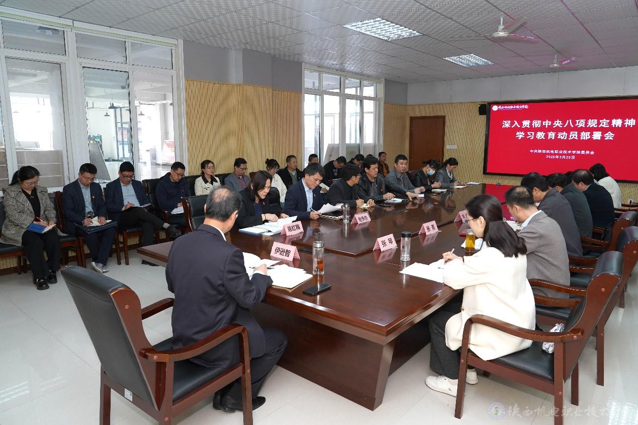3月25日上午,陜西機電職業(yè)技術學院黨委在蟠龍校區(qū)圖書館二樓會議室召開深入貫徹中央八項規(guī)定精神學習教育動員部署會。學校黨委委員、校領導,各黨支部書記,中層干部,部門負責人參加會議,黨委書記伊遜智作動員講話,會議由黨委副書記張琴主持。