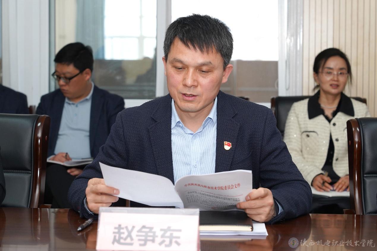 黨委委員、院長助理、黨委組織部部長趙爭東解讀《中共陜西機電職業(yè)技術學院委員會關于深入貫徹中央八項規(guī)定精神學習教育的實施方案》。