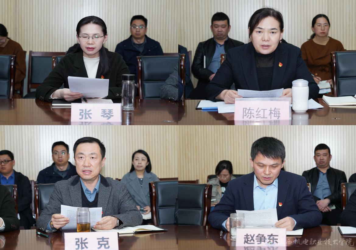 黨委副書記張琴,黨委副書記、紀(jì)委書記陳紅梅,黨委委員、副院長(zhǎng)張克,黨委委員、院長(zhǎng)助理趙爭(zhēng)東分別傳達(dá)學(xué)習(xí)了習(xí)近平總書記在二十屆中央紀(jì)委四次全會(huì)上發(fā)表的重要講話精神和黨的二十屆中央紀(jì)委四次全會(huì)精神,及教育系統(tǒng)全面從嚴(yán)治黨工作視頻會(huì)議、十四屆省紀(jì)委四次全會(huì)、全省教育系統(tǒng)全面從嚴(yán)治黨工作會(huì)等會(huì)議精神。