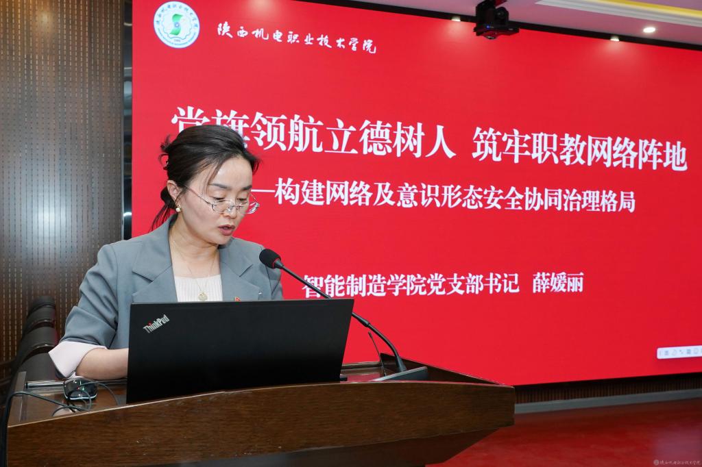 黨委學(xué)工部部長王建斌、教務(wù)處處長白娟娟、智能制造學(xué)院黨支部書記薛媛麗結(jié)合實(shí)際工作作了交流發(fā)言,為進(jìn)一步提升學(xué)校意識形態(tài)工作水平提供了有益思路。