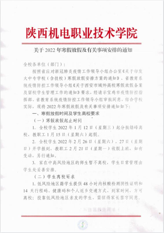 關(guān)于2022年寒假放假及有關(guān)事項安排的通知
