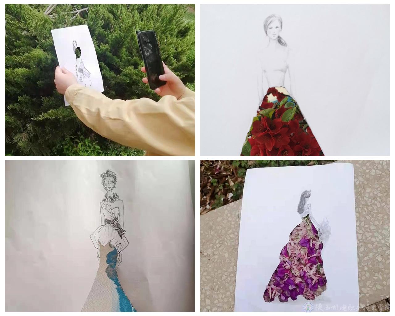 活動由視頻展示、設(shè)計創(chuàng)意、耐心摳圖、拍照實踐、總結(jié)分享等環(huán)節(jié)組成,并鼓勵有繪畫基礎(chǔ)的同學(xué)設(shè)計裙裝。當(dāng)春花絢爛的校園美景遇見優(yōu)雅爛漫的創(chuàng)意裙裝,當(dāng)青春的智慧遇見大自然的饋贈,這種美好的心情自有不可言說的妙處。
