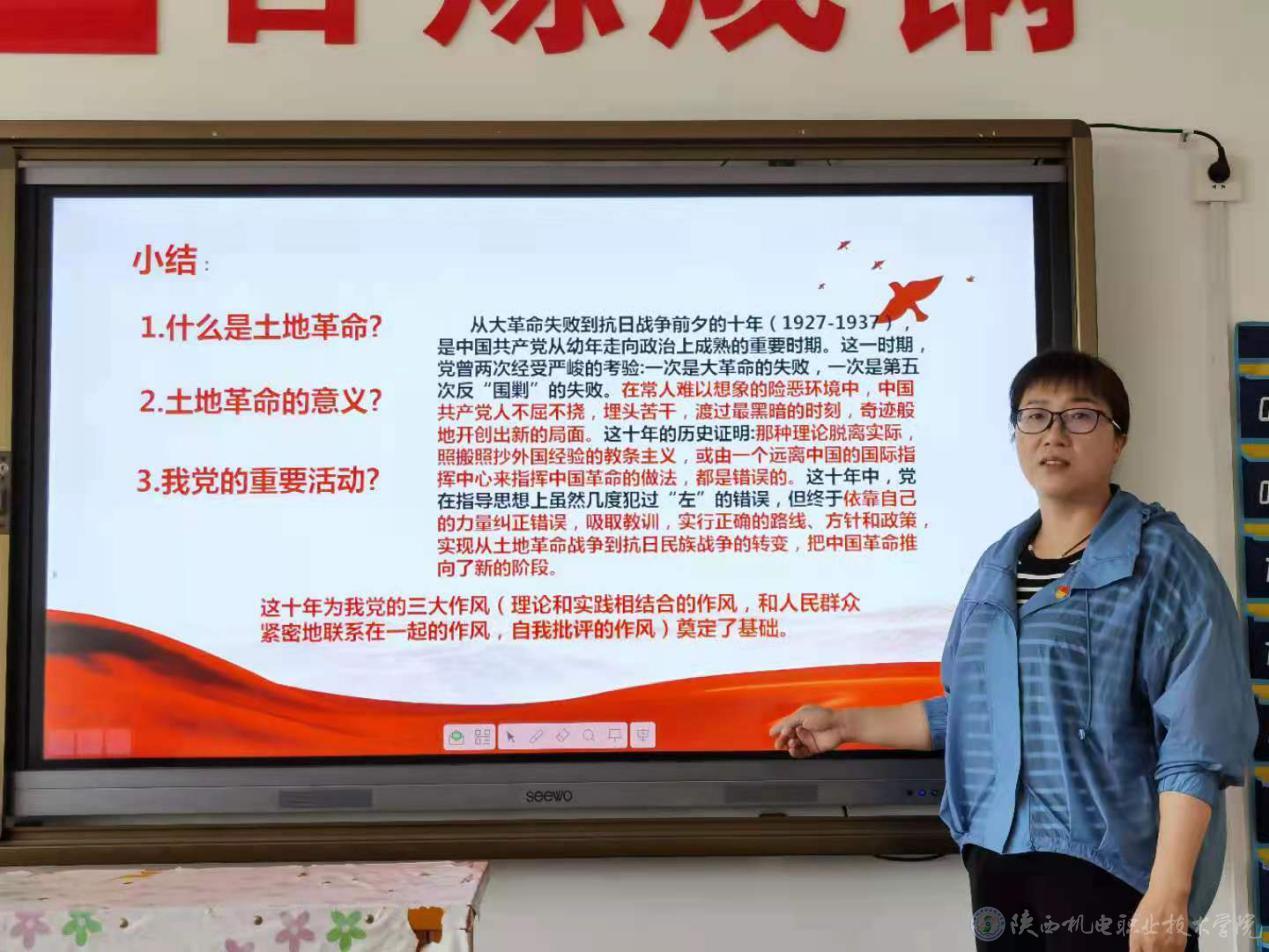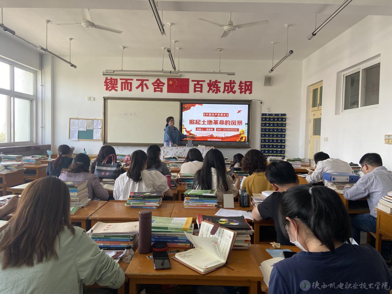 學(xué)習(xí)百年黨史,汲取奮進(jìn)力量。5月24日下午,基礎(chǔ)部黨支部在寶福路校區(qū)403教室開展集體學(xué)習(xí)活動(dòng),黨支部書記滿春燕同志以“掀起土地革命的風(fēng)暴”為主題給支部全體黨員開展了一次生動(dòng)、深刻的黨課教育。