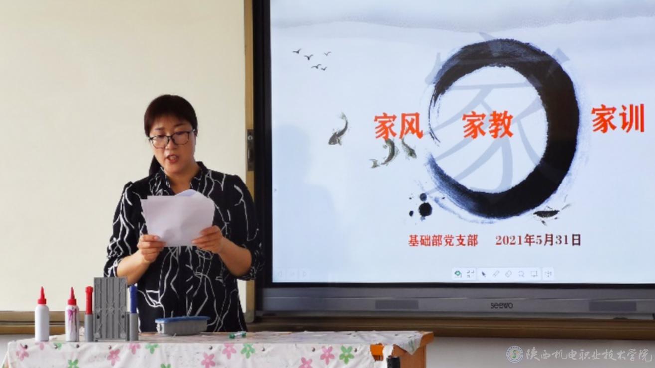 為深入學(xué)習(xí)貫徹習(xí)近平總書記關(guān)于注重家庭家教家風(fēng)建設(shè)重要論述,落實(shí)十九屆中央紀(jì)委五次全會(huì)和十三屆省紀(jì)委五次全會(huì)關(guān)于嚴(yán)格家教家風(fēng),引導(dǎo)黨員干部修身正德、律己守廉的重要部署,以良好家風(fēng)助推全面從嚴(yán)治黨向縱深發(fā)展,基礎(chǔ)部黨支部結(jié)合黨史學(xué)習(xí)教育精神認(rèn)真開展“德潤三秦”家風(fēng)建設(shè)活動(dòng)。