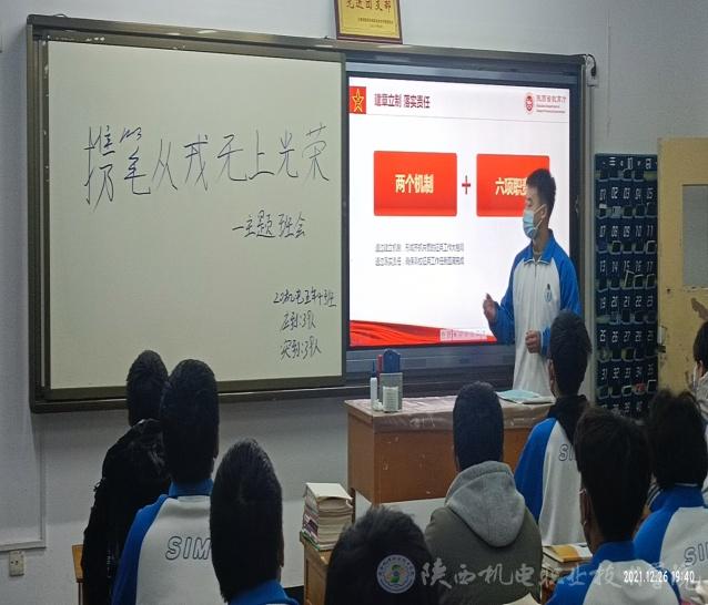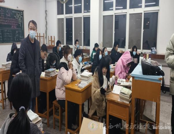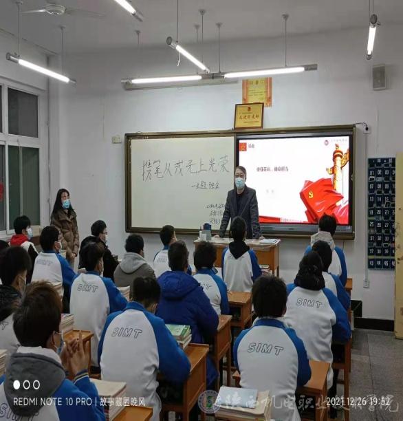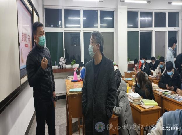 12月26日晚,黨委學(xué)工部(學(xué)生處)對(duì)寶福路校區(qū)班級(jí)疫情防控工作及主題班會(huì)開展情況進(jìn)行專項(xiàng)檢查,黨委學(xué)工部部長(zhǎng)、學(xué)生處處長(zhǎng)王建斌深入班級(jí)教室,檢查疫情防控工作,旁聽了智能制造學(xué)院20機(jī)電五年4班的主題班會(huì)課。