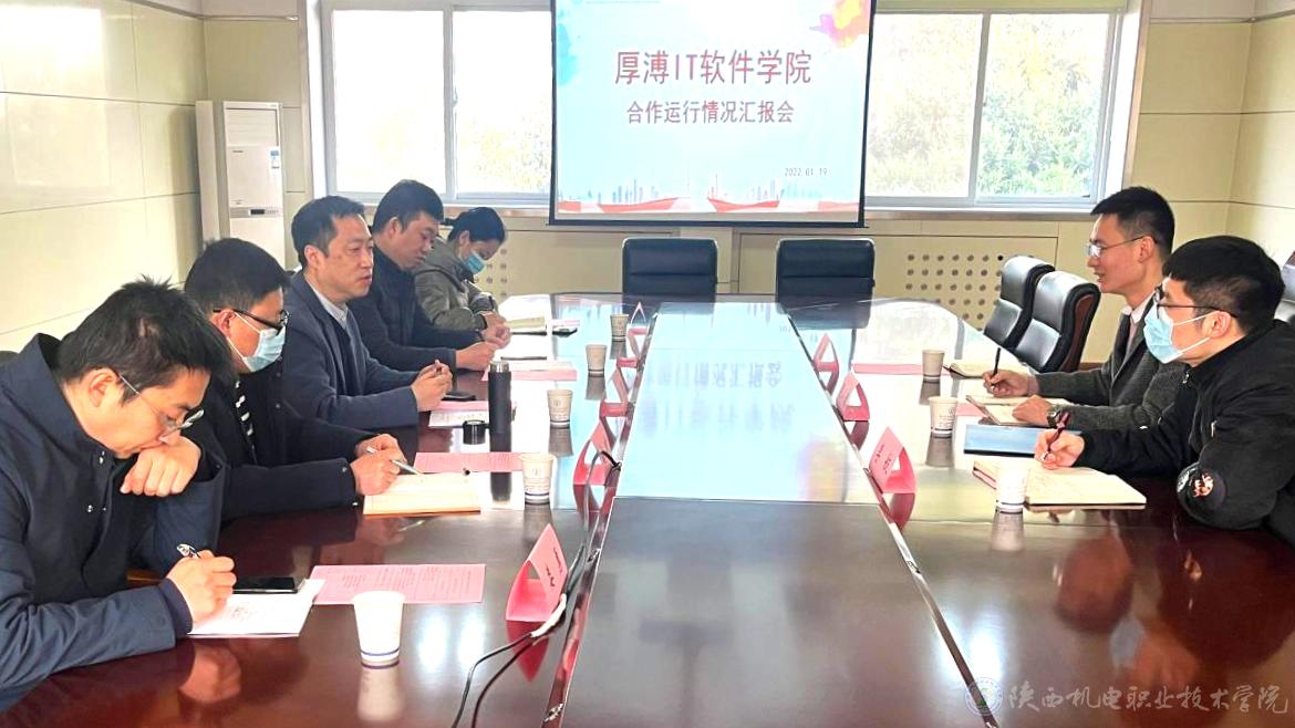 1月19日上午,厚溥IT軟件學(xué)院合作運(yùn)行情況匯報(bào)會(huì)在寶福路校區(qū)行政樓3樓西會(huì)議室召開。黨委委員、副校長(zhǎng)張克,電子與信息學(xué)院院長(zhǎng)姜有奇,電子與信息學(xué)院黨支部書記高賦、厚溥IT軟件學(xué)院(以下簡(jiǎn)稱厚溥學(xué)院)項(xiàng)目經(jīng)理周小康等人出席。此次匯報(bào)會(huì)由姜有奇主持。