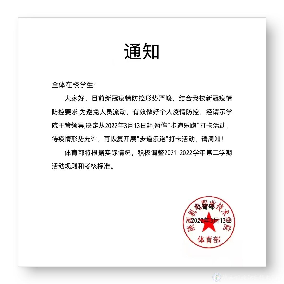 英語教研室及時(shí)調(diào)整,將原本線下進(jìn)行了《大學(xué)英語1》補(bǔ)考及時(shí)調(diào)整為線上補(bǔ)考,并做好了補(bǔ)考準(zhǔn)備;體育部快速反應(yīng),于3月13日發(fā)布通知,為避免人員聚集、流動(dòng),關(guān)閉了寶福路校區(qū)體育館,合理調(diào)整了“步道樂跑”打卡活動(dòng)規(guī)則和考核標(biāo)準(zhǔn),一方面有效降低了學(xué)生的聚集風(fēng)險(xiǎn)以及流動(dòng)風(fēng)險(xiǎn),另一方面,也打消了學(xué)生的疑慮及擔(dān)心,使學(xué)生能安心投入學(xué)習(xí)。