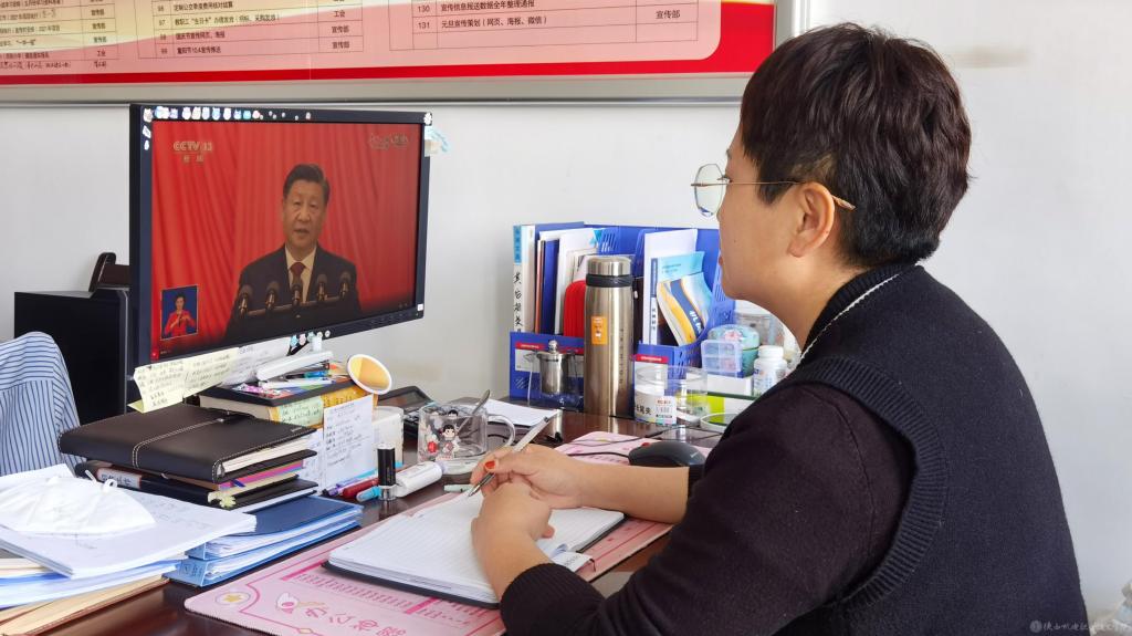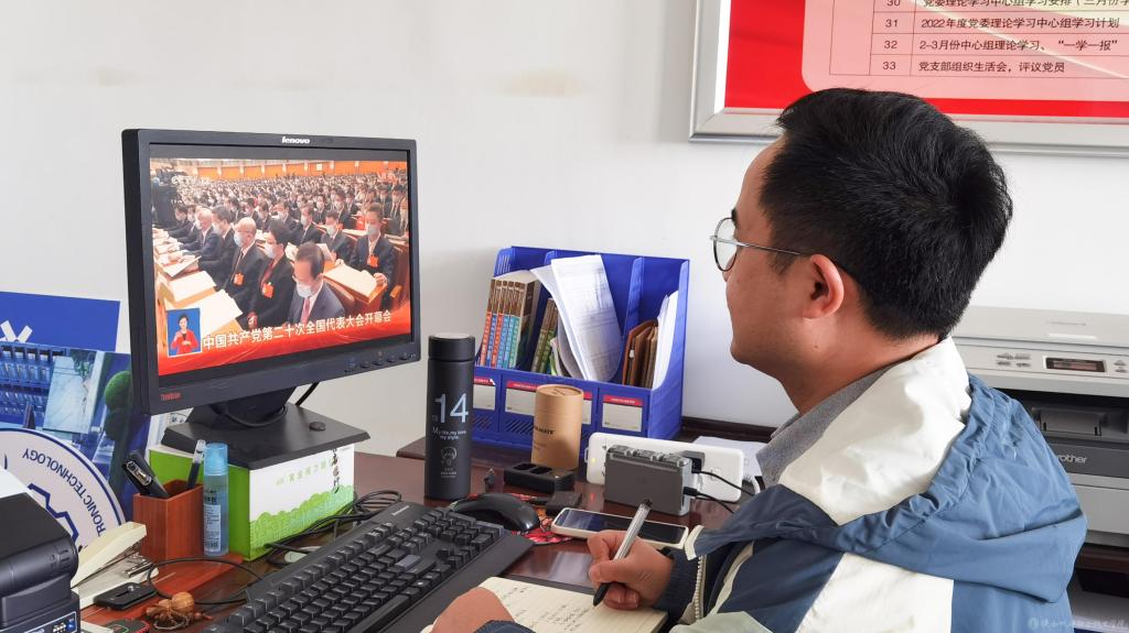 支部黨員在工作崗位上收看中國共產(chǎn)黨第二十次全國代表大會開幕會